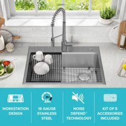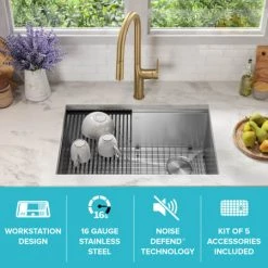Kraus 34-3/8″ Undermount 60/40 Double Bowl 16 Gauge Stainless Steel Kitchen Sink
