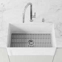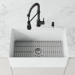 Kraus Turino 33″ Farmhouse Single Basin Fireclay Kitchen Sink with Basin Rack and Sound Dampening