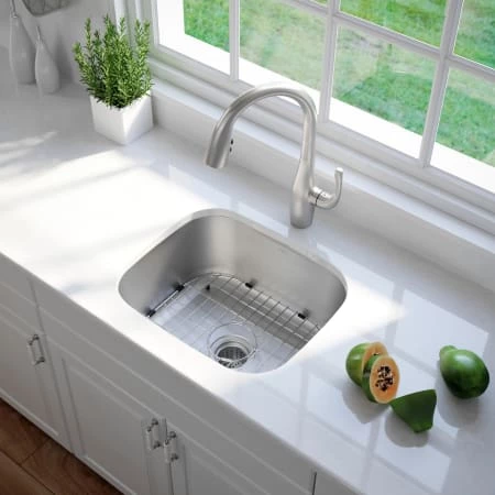 - Single bowl 19-7/10″ sink with traditional rounded corners