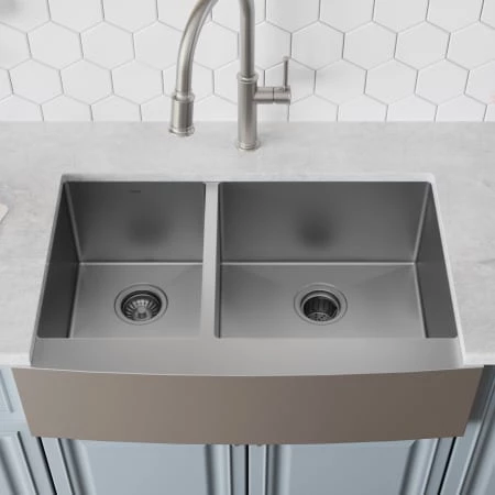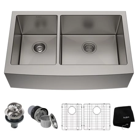 - FREE Accessories: Protective bottom grids (x2), premium 3-piece basket strainer set, drain assembly with strainer, Kraus kitchen towel