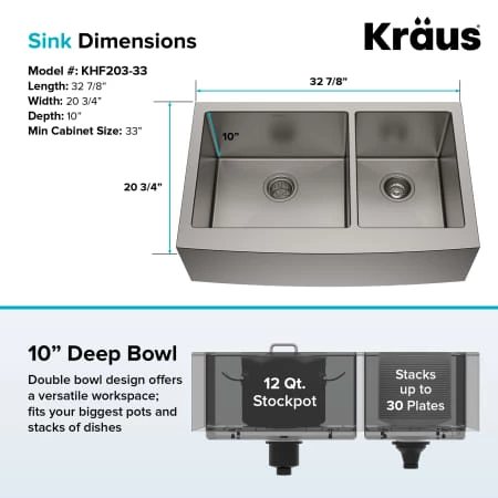 - FREE Accessories: Protective bottom grids (x2), premium 3-piece basket strainer set, drain assembly with strainer, Kraus kitchen towel