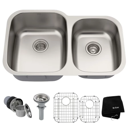- Free Accessories: Protective bottom grids (x2), premium 3-piece basket strainer set, sink strainer, Kraus kitchen towel