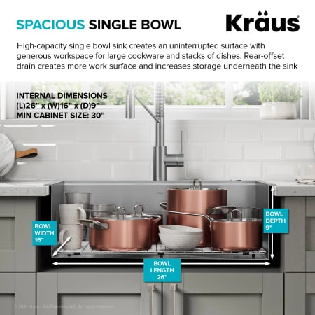 - Basin Dimensions: 26″ L x 16″ W x 9″ D
