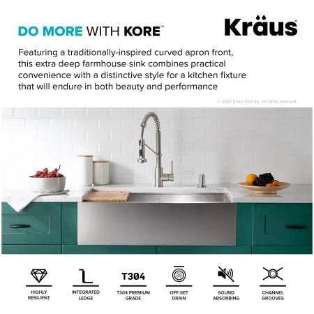 Do more with Kore – The ultimate sink for the modern home chef. Inspired by professional kitchens, the Kore workstation series instantly transforms your kitchen sink into a full-service prep station. Featuring a traditionally-inspired curved apron front, this deep-capacity farmhouse sink combines practical convenience with charming country style. A kitchen fixture that will endure in both beauty and performance, the farmhouse sink creates a distinctive focal point that instantly upgrades any decor. Packed with premium accessories such as the multi-purpose dish drying rack and bamboo cutting board, the integrated ledge system allows you to wash and dry, or chop and slice without losing an inch of counter space. Made with 16-gauge stainless steel, this kitchen workhorse is one of the toughest and most durable sinks on the market. The advanced modern look and culinary-inspired design is an instant upgrade to any home kitchen. Take the functionality of your kitchen sink to a whole new level with the Kore workstation series and experience the Kraus difference.