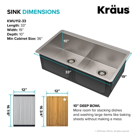 - Spacious double bowl with 50/50 split bowls allow you to multi-task