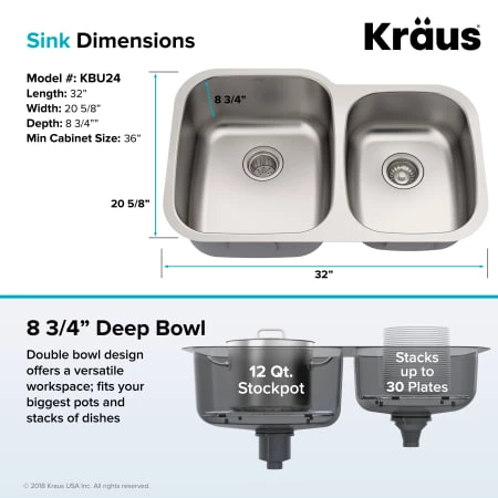 Kraus kitchen sinks are known for excellent quality and sturdy construction. Made with durable T-304 stainless steel, this undermount sink will stand up to constant use, and easily handles your toughest kitchen tasks. Since thicker steel means a stronger, more dent-resistant sink, this model is made from TRU16 real 16-gauge stainless steel, always 1.5mm thick. This kit also includes the Kraus WasteGuard continuous feed garbage disposal for kitchen sinks. Featuring a MagnaGrind 3800 RPM 3/4 horsepower permanent-magnet motor, this premium disposal provides instant power, ensuring faster operation than traditional induction motors for reliable grinding of the toughest food scraps. An included stopper allows you to fill up the sink bowl for soaking dishes, with an extended tailpiece that doubles as a plunger to safely push stubborn food scraps into the disposal. Comes with a complete garbage disposal install kit, including power cord and flange.