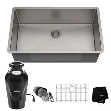 Enjoy the advantage of high-end kitchen sinks without the high price tag with the best-selling Standart PRO series by Kraus. A deep bowl offers plenty of room for all your dishes, while gently rounded corners make this sink easy to clean. A rear-set drain ensures optimal drainage even with dishes in the basin, while engineered channel grooves help direct water to the drain, for a clean and quick-drying sink. This kit also includes the Kraus WasteGuard continuous feed garbage disposal for kitchen sinks. Featuring a MagnaGrind 3800 RPM 3/4 horsepower permanent-magnet motor, this premium disposal provides instant power, ensuring faster operation than traditional induction motors for reliable grinding of the toughest food scraps. An included stopper allows you to fill up the sink bowl for soaking dishes, with an extended tailpiece that doubles as a plunger to safely push stubborn food scraps into the disposal. Comes with a complete garbage disposal install kit, including power cord and flange.