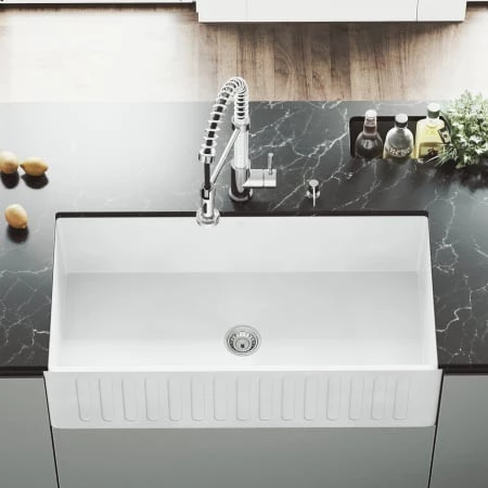 - Constructed of VIGO’s™ matte stone resin, a solid core material similar in composition to Corian maintaining non-porous, solid surface qualities